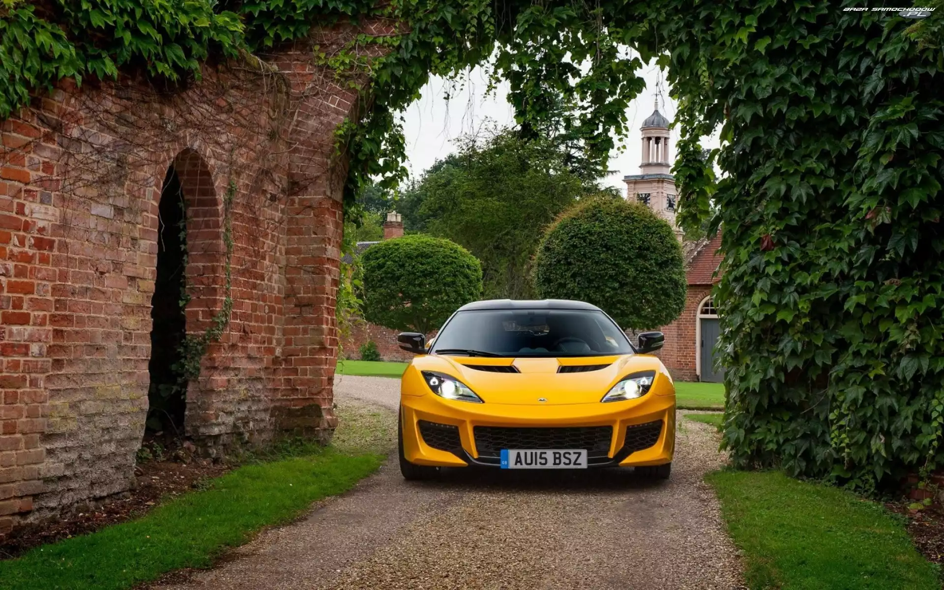 Lotus Evora GT410 Sport Dom, Lotus Evora Lotus Evora, Sportowa, Nadwozia, Linia Lotus Evora, Tył Evora Sport 410, Samochód, Lotus Lotus Evora GT430 Żółty, Lotus Evora 400 GTE, Lotus, Evora 2016, Żółty, Lotus Evora Sport 410 GTE, Lotus, Evora Niebieski, Lotus Evora GT Lotus Evora GT410 Lotus Evora Mur, Winorośl, Droga, Dzika, Żółty, Samochód, Drzewa, Evora, Lotus, Brama