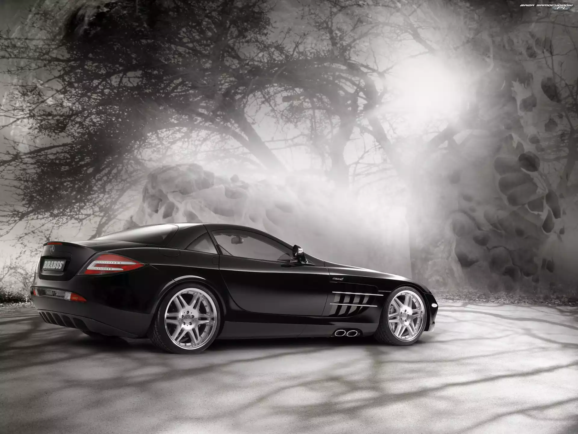 SLR Brabus, Mercedes SLR Mercedes SLR Mercedes Benz SLR, Czarny Mercedes SLR Drzwi, Mercedes SLR, Unoszone Zatoka, Mercedes SLR, Krajobraz Mercedes SLR Mercedes SLR Mercedes Benz SLR Spojler, Mercedes SLR, Wysuwany Mercedes SLR, Tył Brabus, Mercedes Benz SLR Mercedes Benz SLR McLaren Roadster, Srebrny
