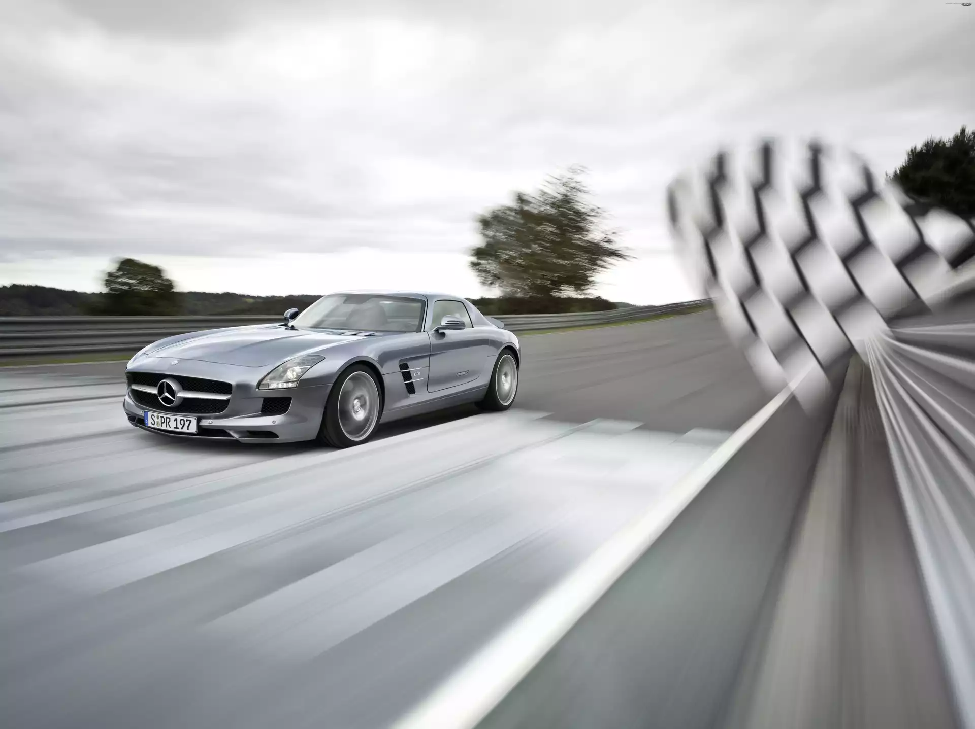 Flaga, Wyścigowy, Mercedes Benz SLS, Tor- Zdjęcia samochodów