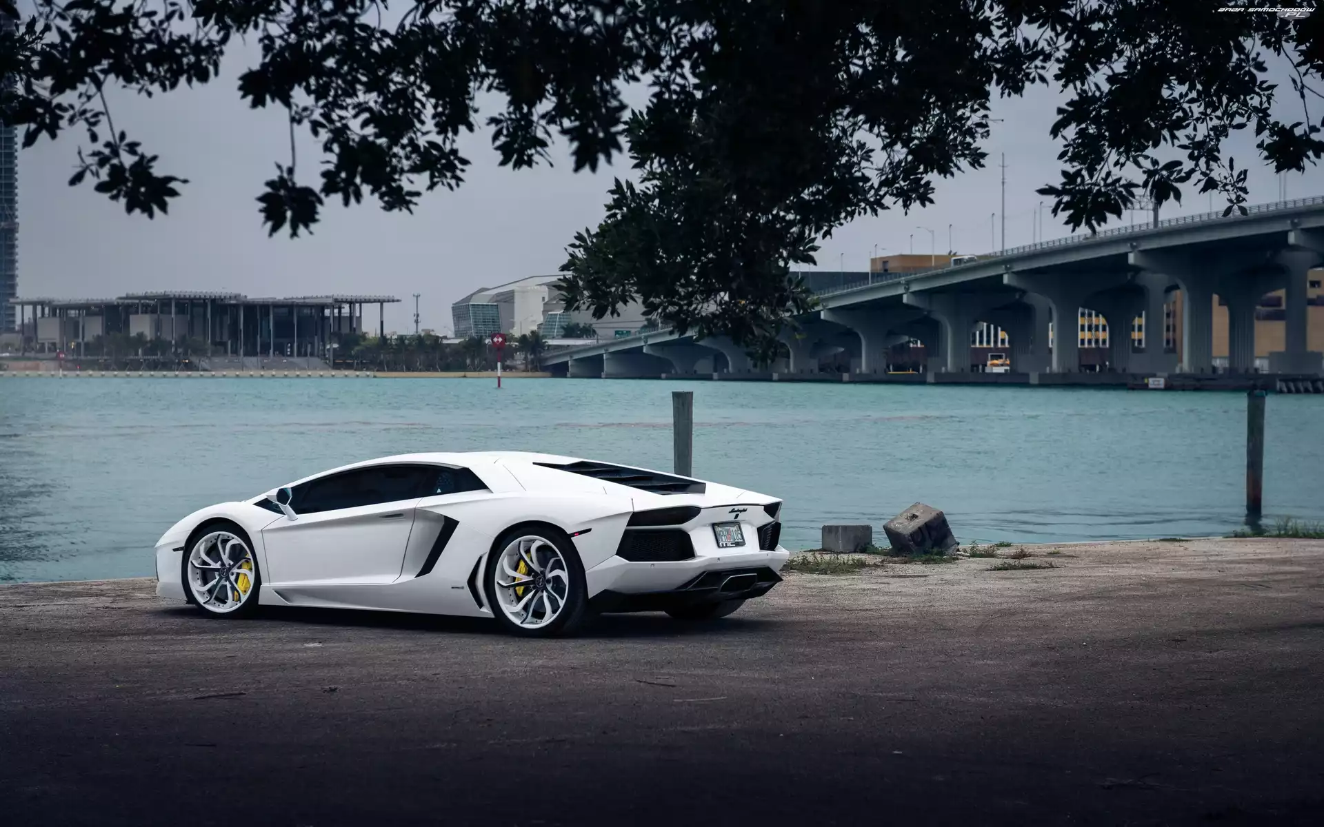 Samochód: Lamborghini, Most, Białe, Rzeka