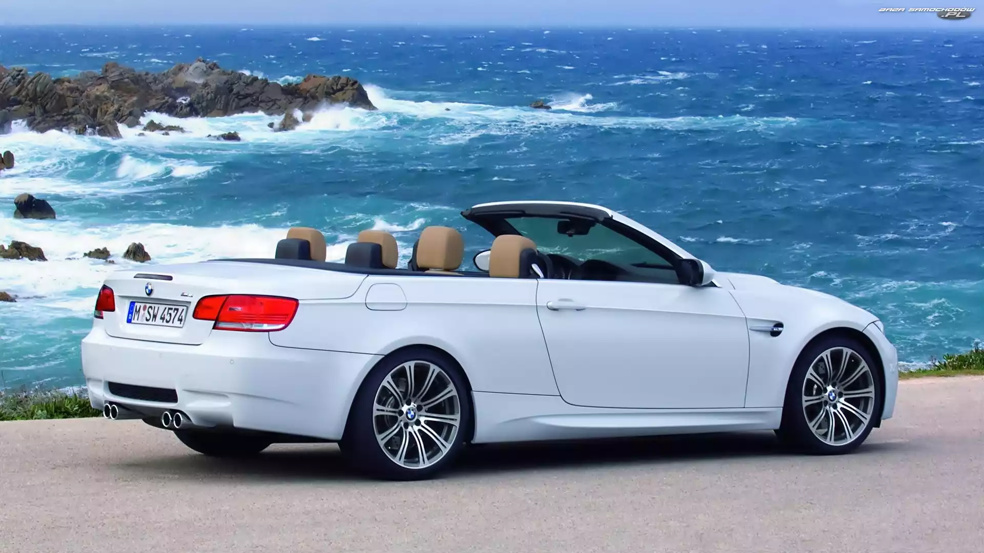 Skały, Morze, BMW M3 E93, Białe, Kabriolet- Zdjęcia samochodów